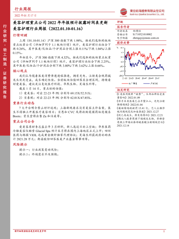 【东亚前海证券】【20220117】美容护理行业周报:美容护理重点公司2022年年报预计披露时间表更新-11页