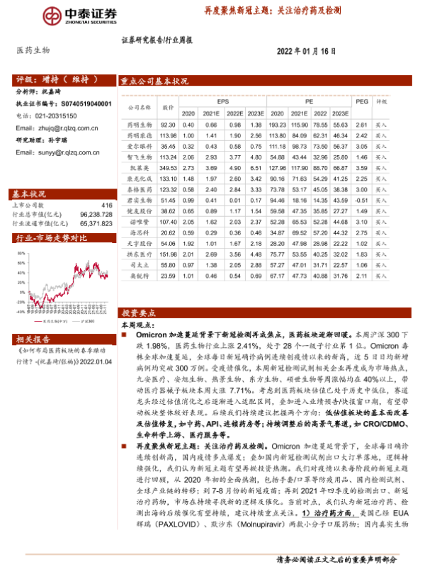 【中泰证券】【20220116】医药生物行业周报:再度聚焦新冠主题:关注治疗药及检测-11页