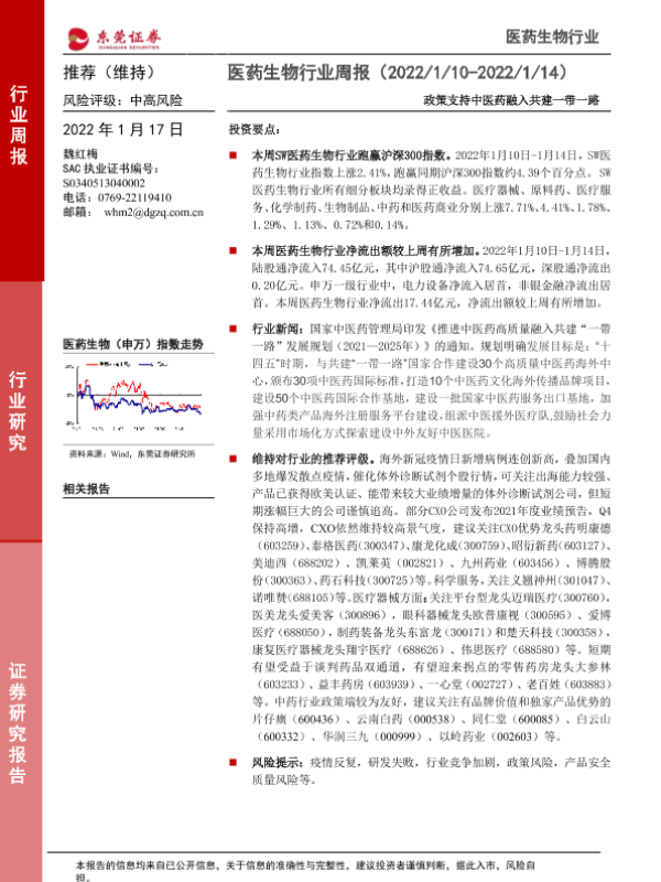 【东莞证券】【20220117】医药生物行业周报:政策支持中医药融入共建一带一路-12页