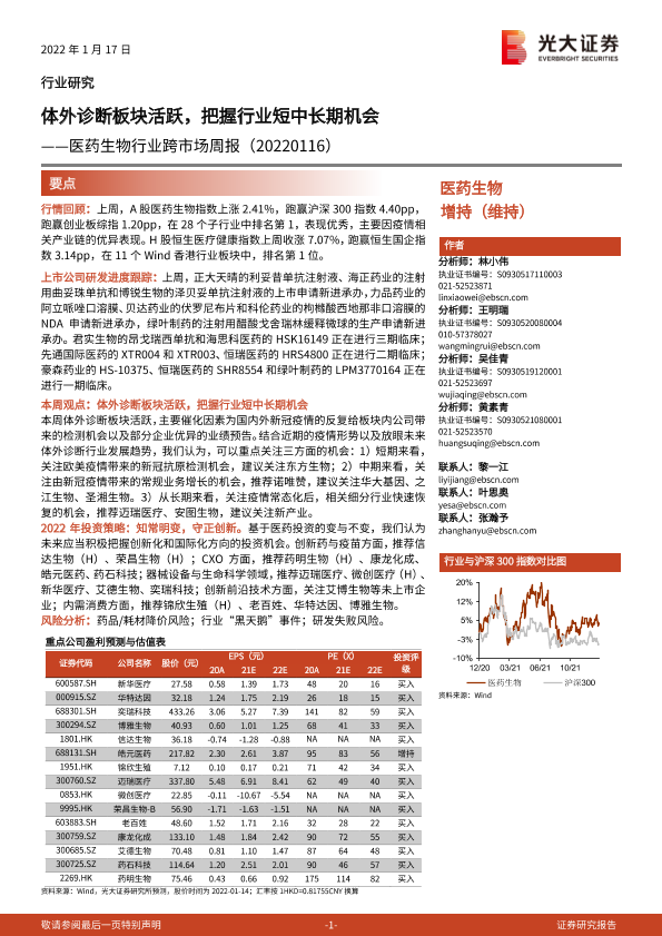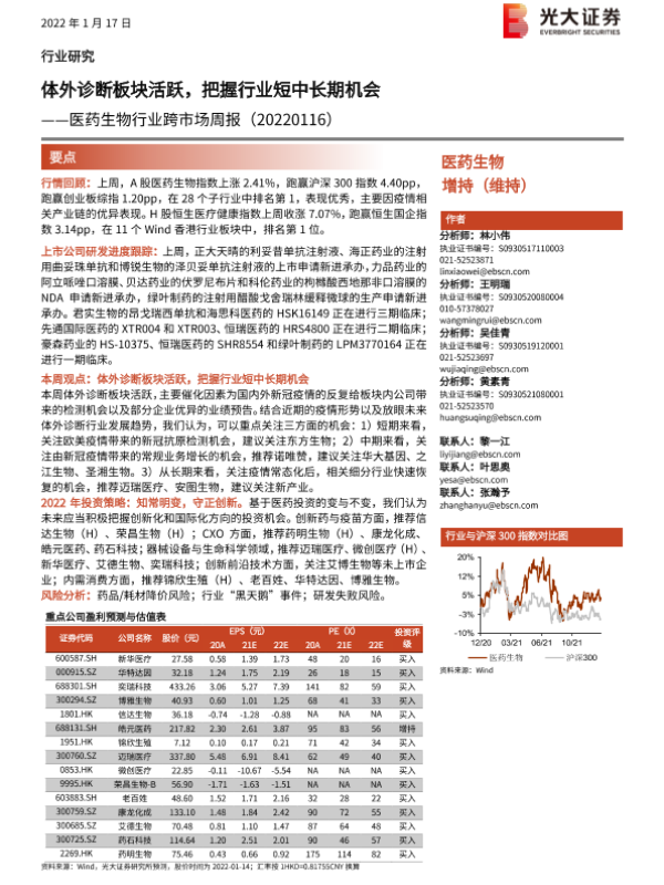 【光大证券】【20220117】医药生物行业跨市场周报:体外诊断板块活跃,把握行业短中长期机会-31页