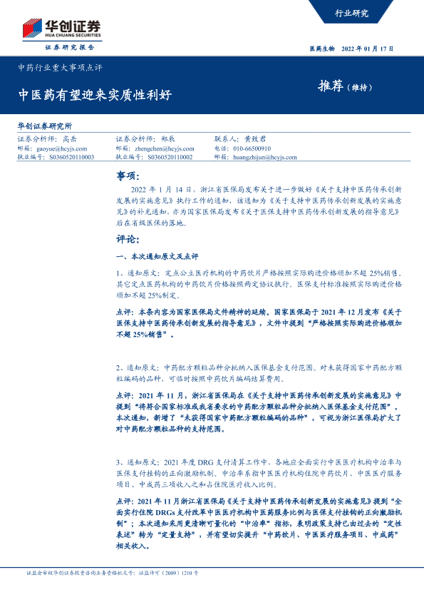 【华创证券】【20220117】中药行业重大事项点评:中医药有望迎来实质性利好-5页