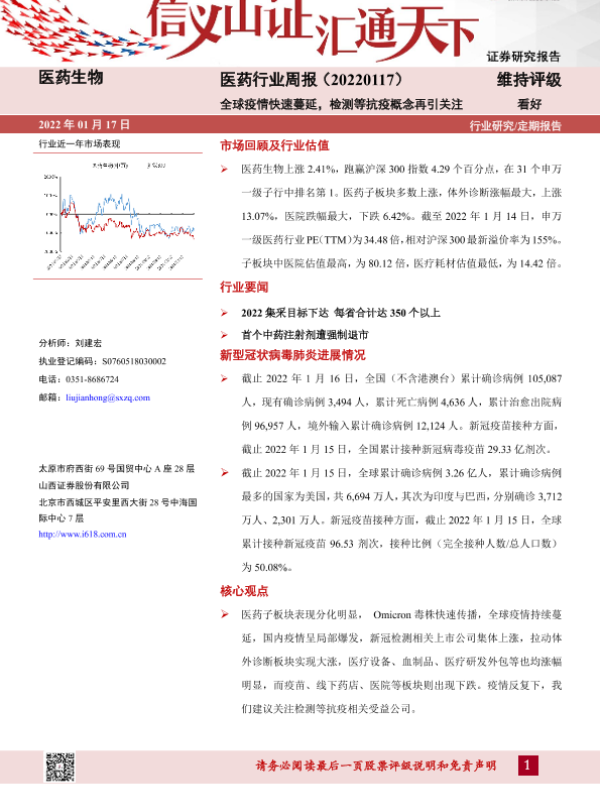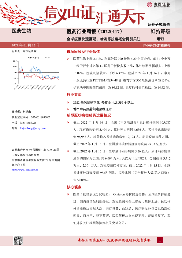 【山西证券】【20220117】全球疫情快速蔓延,检测等抗疫概念再引关注-9页