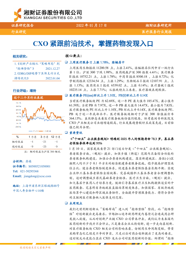 CXO 前沿技术 医疗服务 药物发现 行业周报