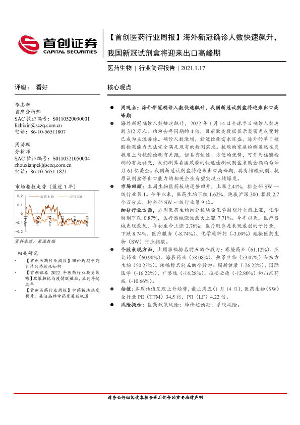 【首创证券】【20220117】海外新冠确诊人数快速飙升,我国新冠试剂盒将迎来出口高峰期-16页