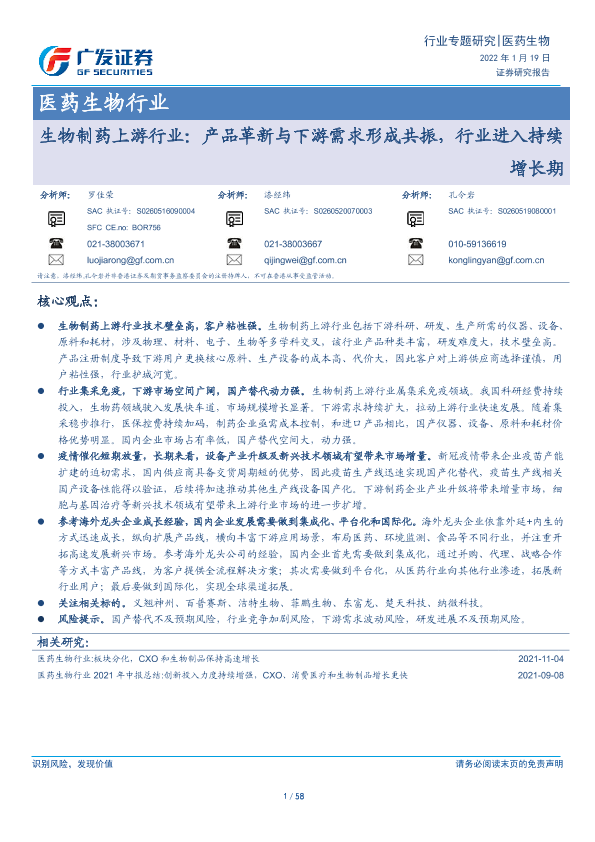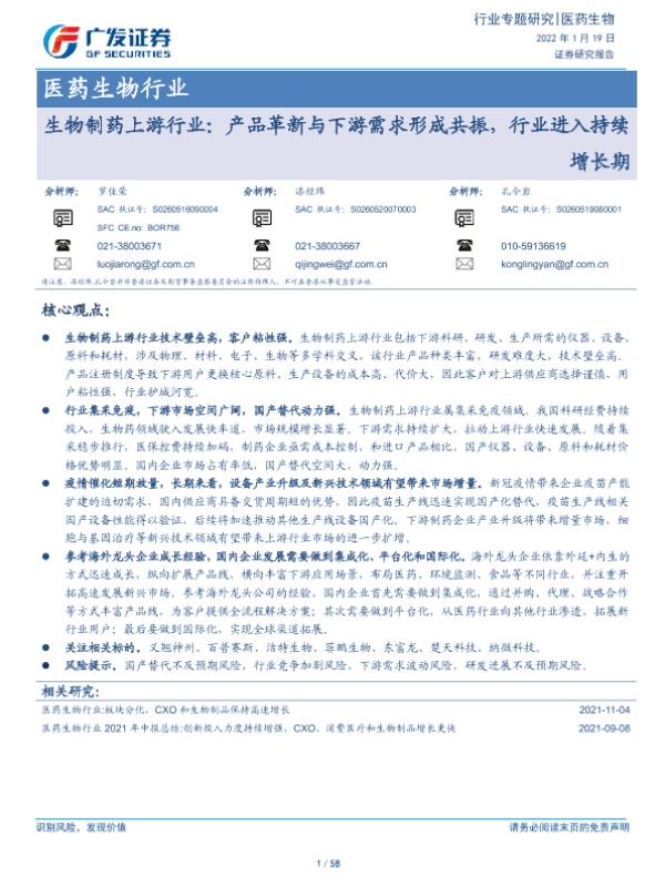 【广发证券】【20220119】生物制药上游行业:产品革新与下游需求形成共振,行业进入持续增长期-58页