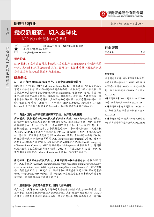 【浙商证券】【20220120】MPP授权新冠特效药点评:授权新冠药,切入全球化-3页
