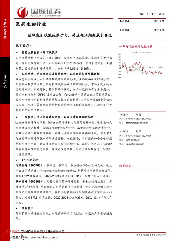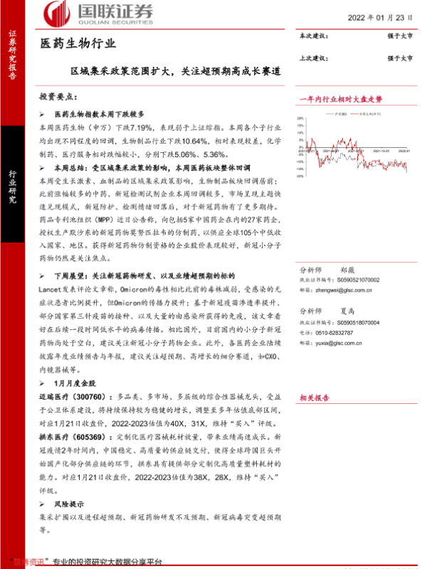 【国联证券】【20220123】医药生物行业:区域集采政策范围扩大,关注超预期高成长赛道-9页