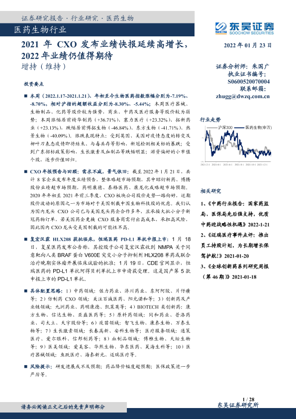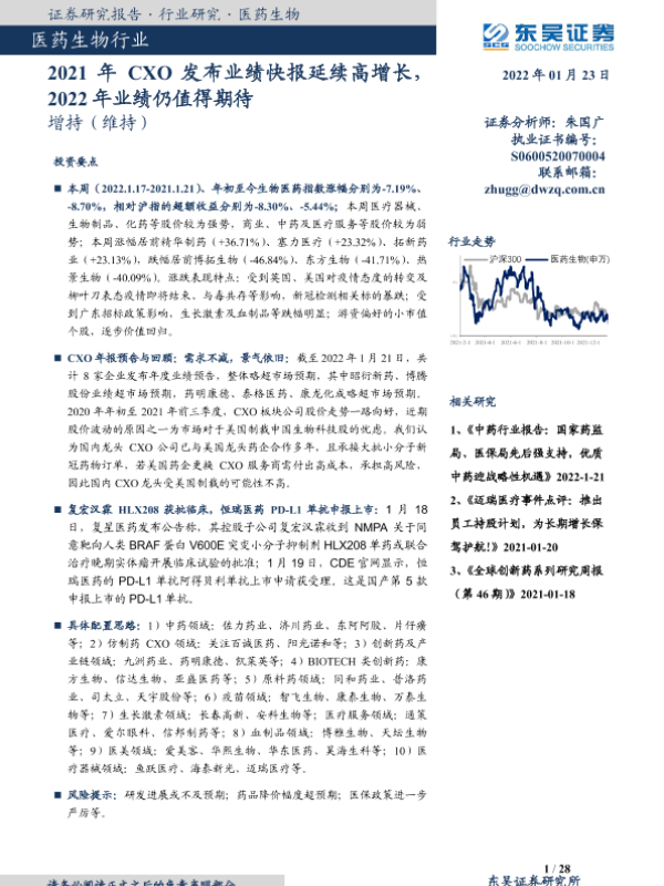 【东吴证券】【20220123】2021年CXO发布业绩快报延续高增长,2022年业绩仍值得期待-28页