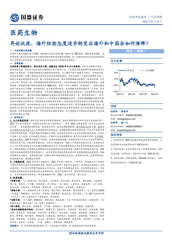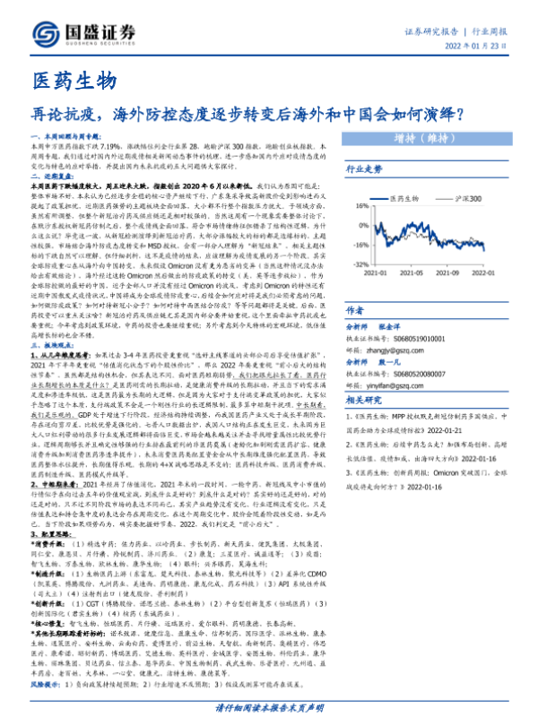 【国盛证券】【20220123】医药生物行业周报:再论抗疫,海外防控态度逐步转变后海外和中国会如何演绎?-28页
