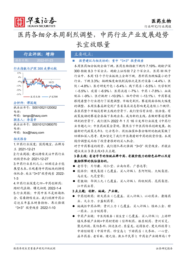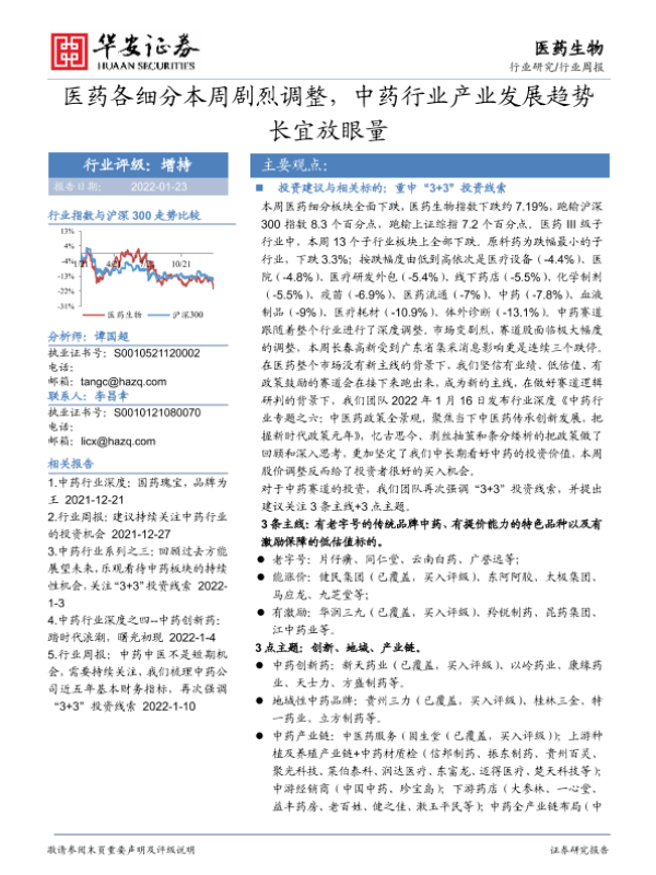 【华安证券】【20220123】医药各细分本周剧烈调整,中药行业产业发展趋势长宜放眼量-18页