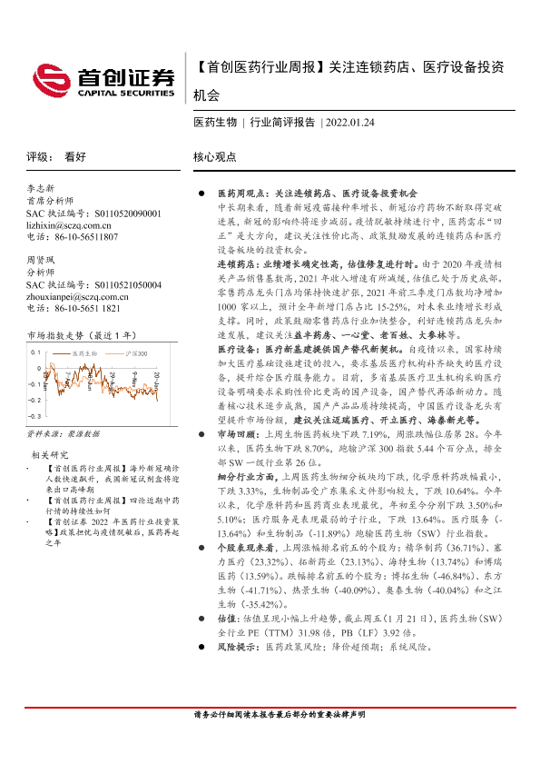【首创证券】【20220124】首创医药行业周报:关注连锁药店、医疗设备投资机会-10页
