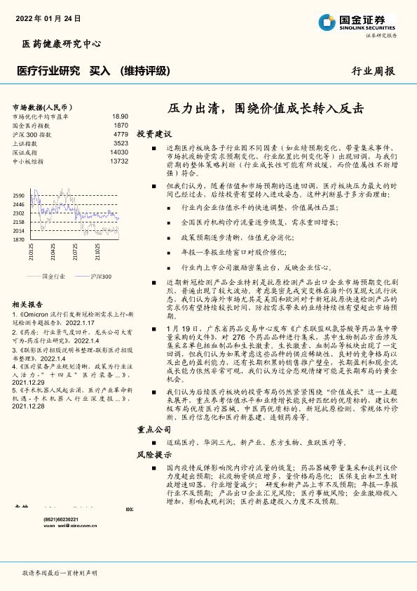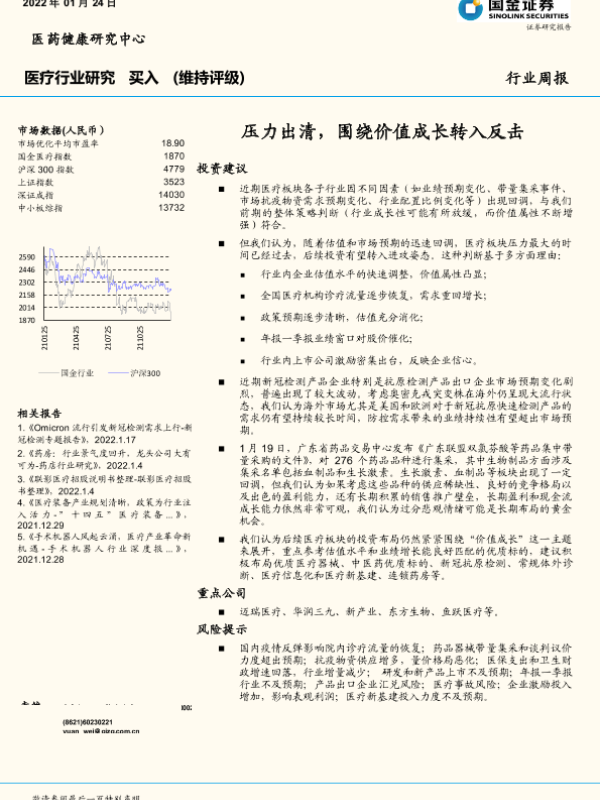 【国金证券】【20220124】医疗行业研究:压力出清,围绕价值成长转入反击-9页