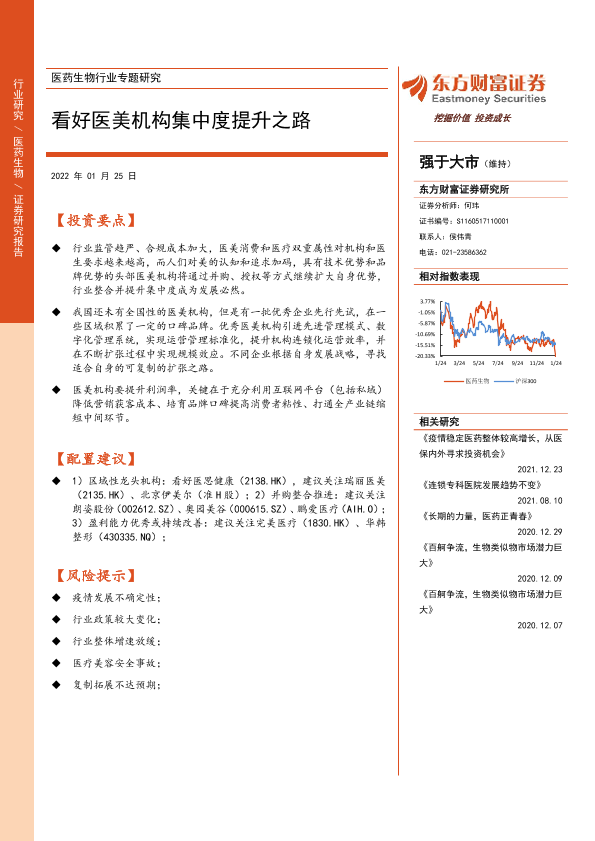 医美机构 医药生物 投资建议 行业集中度 风险提示