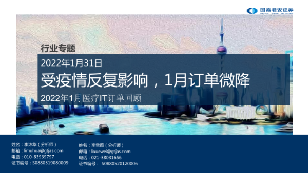 【国泰君安证券】【20220131】2022年1月医疗IT订单回顾-10页