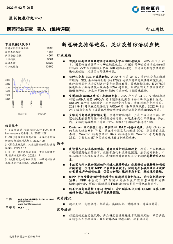 【国金证券】【20220206】医药行业研究周报:新冠研发持续进展,关注疫情防治供应链-13页