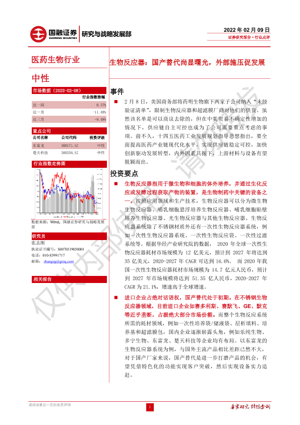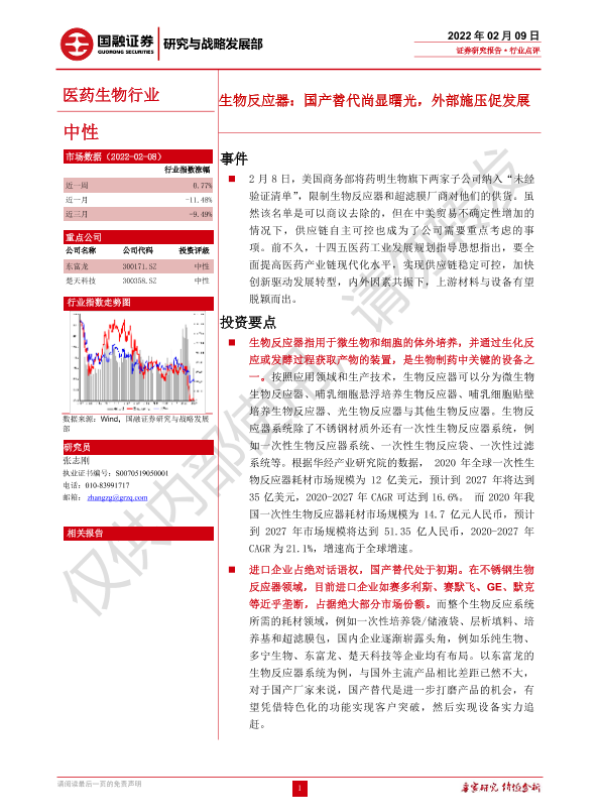 【国融证券】【20220209】生物反应器:国产替代尚显曙光,外部施压促发展-3页