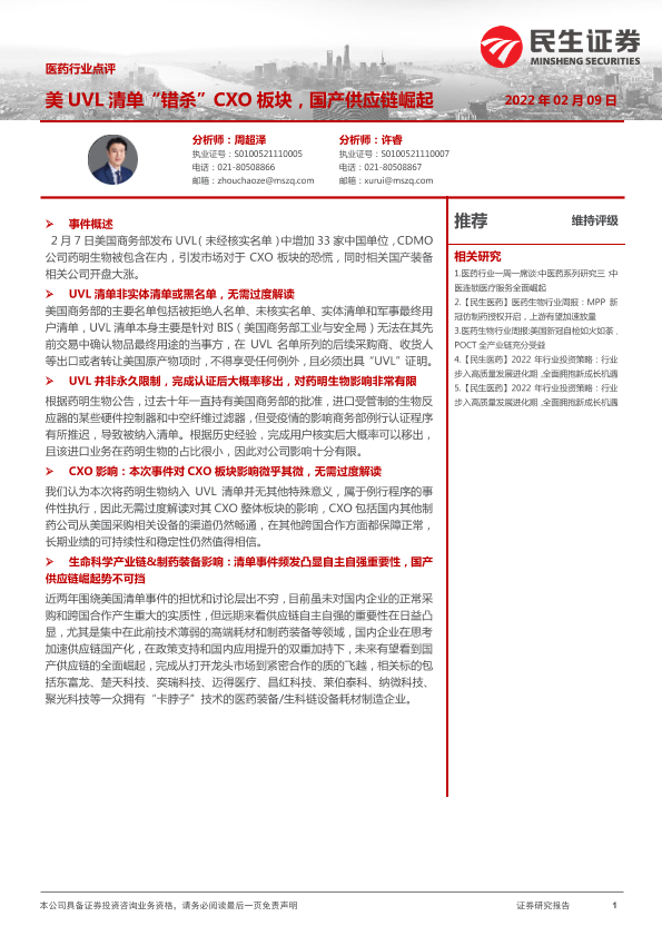【民生证券】【20220209】美UVL清单“错杀”CXO板块,国产供应链崛起-3页