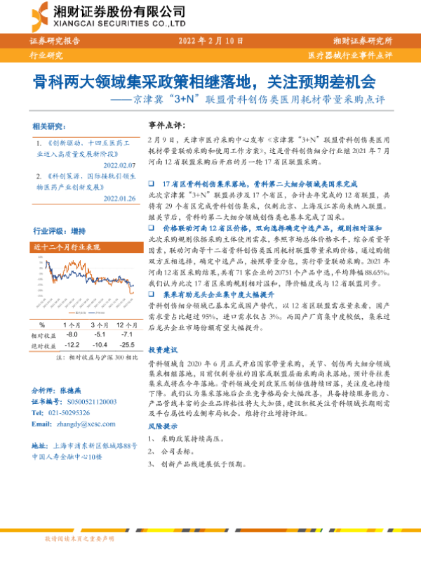 【湘财证券】【20220210】京津冀“3+N”联盟骨科创伤类医用耗材带量采购点评-2页