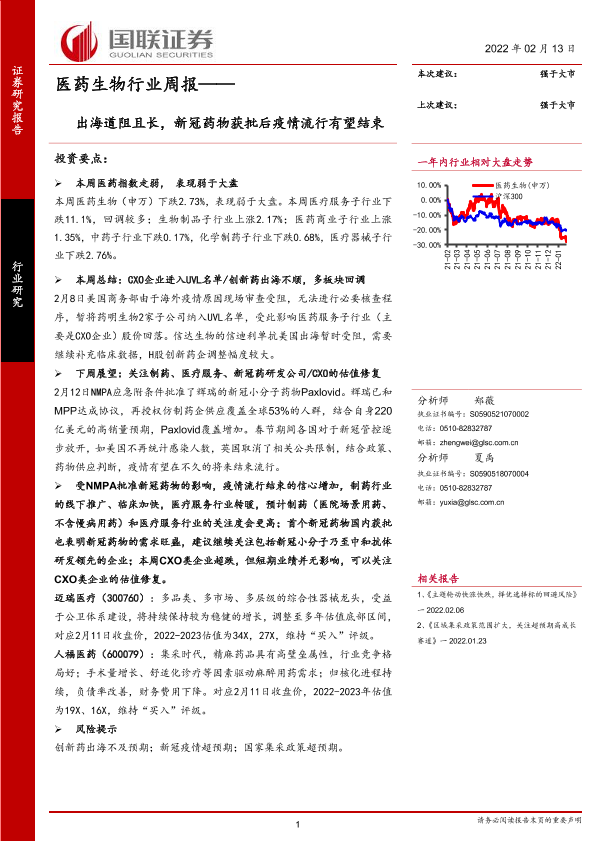 【国联证券】【20220213】医药生物行业周报:出海道阻且长,新冠药物获批后疫情流行有望结束-14页