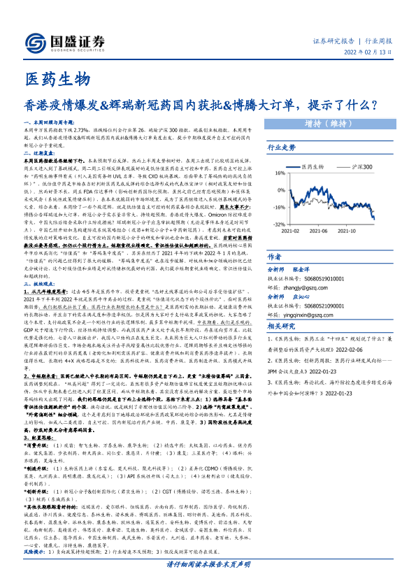 【国盛证券】【20220213】医药生物行业周报:香港疫情爆发&辉瑞新冠药国内获批&博腾大订单,提示了什么?-34页