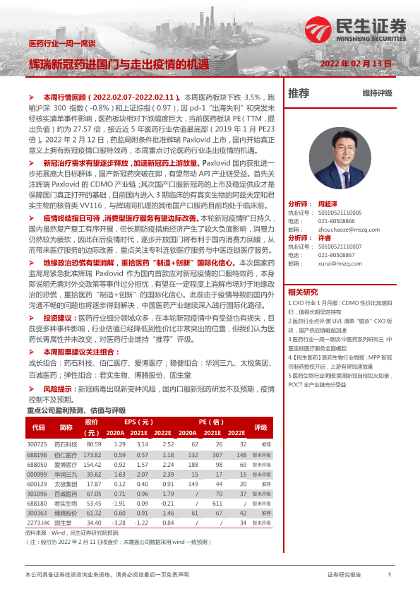 【民生证券】【20220213】医药行业一周一席谈:辉瑞新冠药进国门与走出疫情的机遇-9页