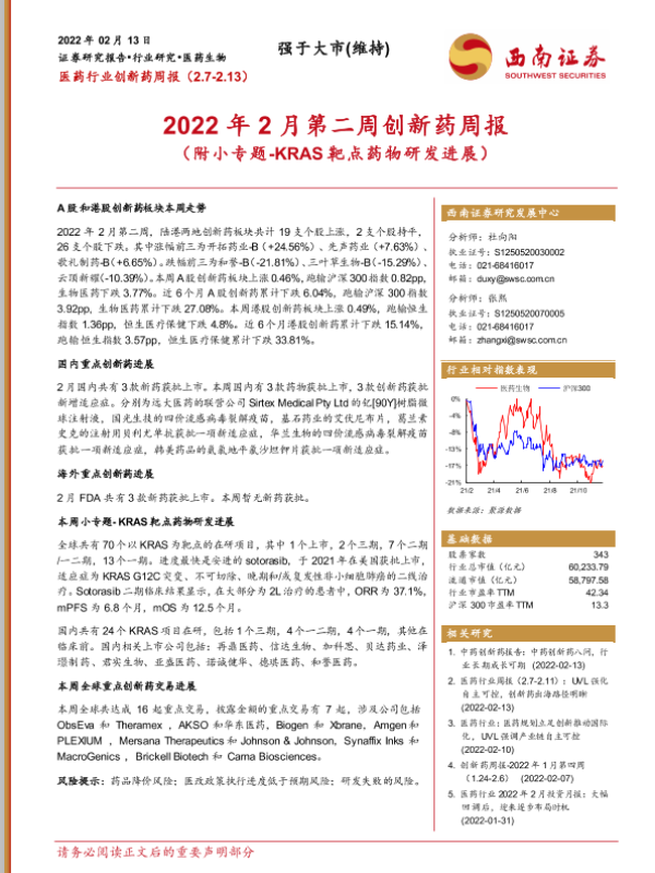 【西南证券】【20220213】2022年2月第二周创新药周报-24页