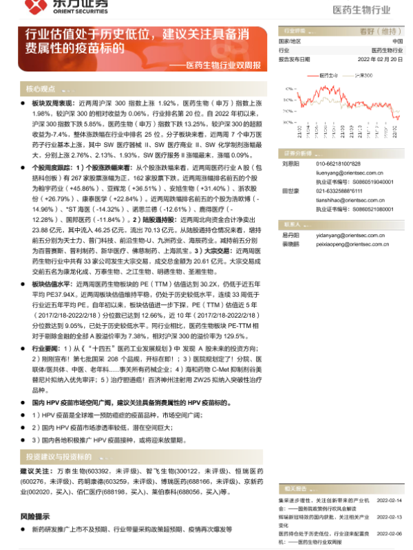 【东方证券】【20220220】医药生物行业双周报:行业估值处于历史低位,建议关注具备消费属性的疫苗标的-16页