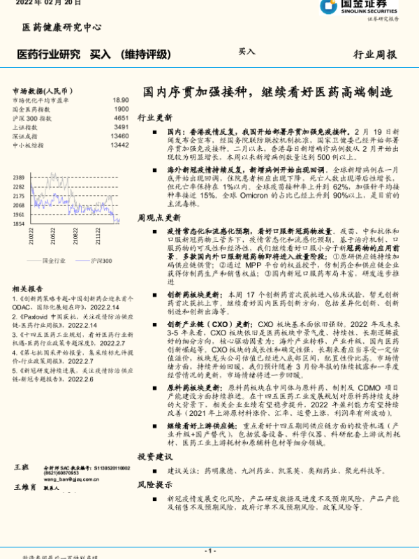【国金证券】【20220220】国内序贯加强接种,继续看好医药高端制造-16页
