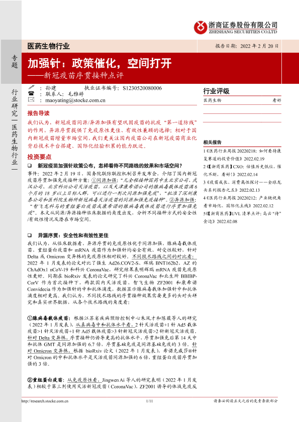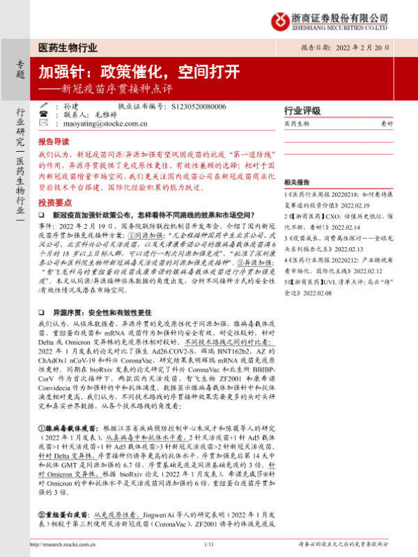 【浙商证券】【20220220】新冠疫苗序贯接种点评:加强针:政策催化,空间打开-11页