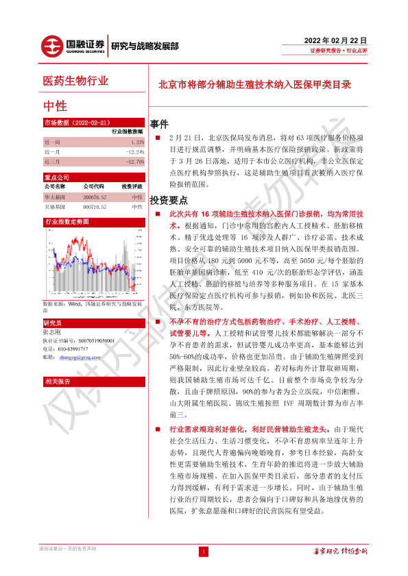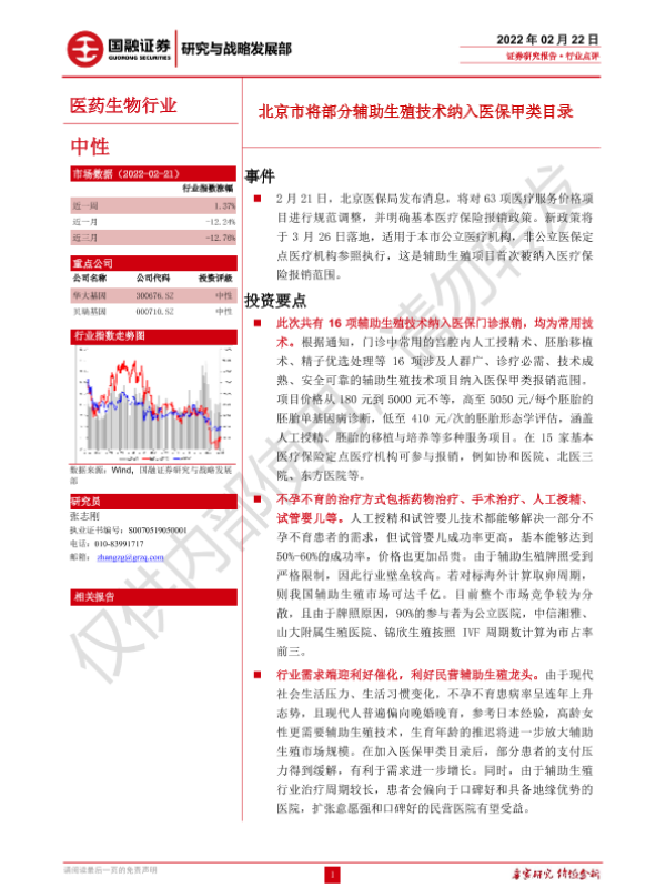 【国融证券】【20220222】医药生物行业:北京市将部分辅助生殖技术纳入医保甲类目录-3页