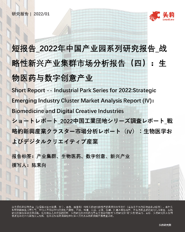 【头豹研究院】【2022】2022年中国产业园系列研究报告:战略性新兴产业集群市场分析报告(四)生物医药与数字创意产业-28页