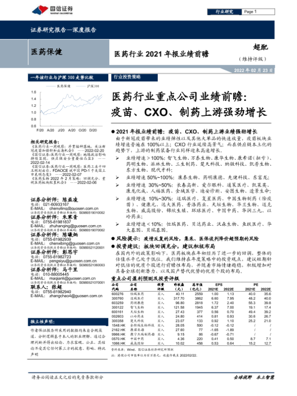 【国信证券】【20220223】医药行业重点公司业绩前瞻:疫苗、CXO、制药上游强劲增长-9页