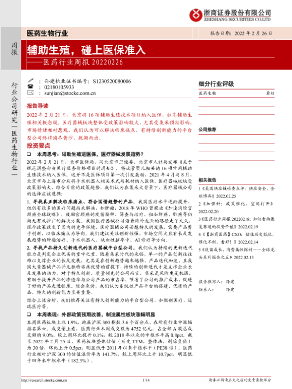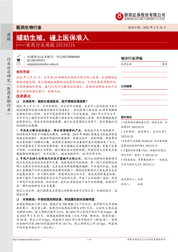 【浙商证券】【20220226】医药行业周报:辅助生殖,碰上医保准入-14页