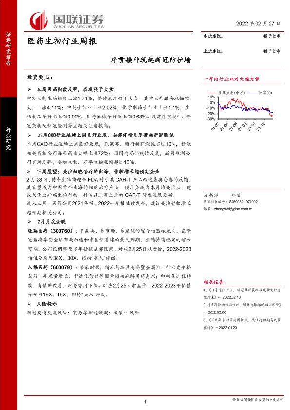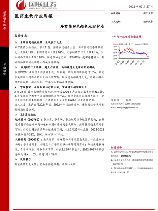【国联证券】【20220227】医药生物行业周报:序贯接种筑起新冠防护墙-15页