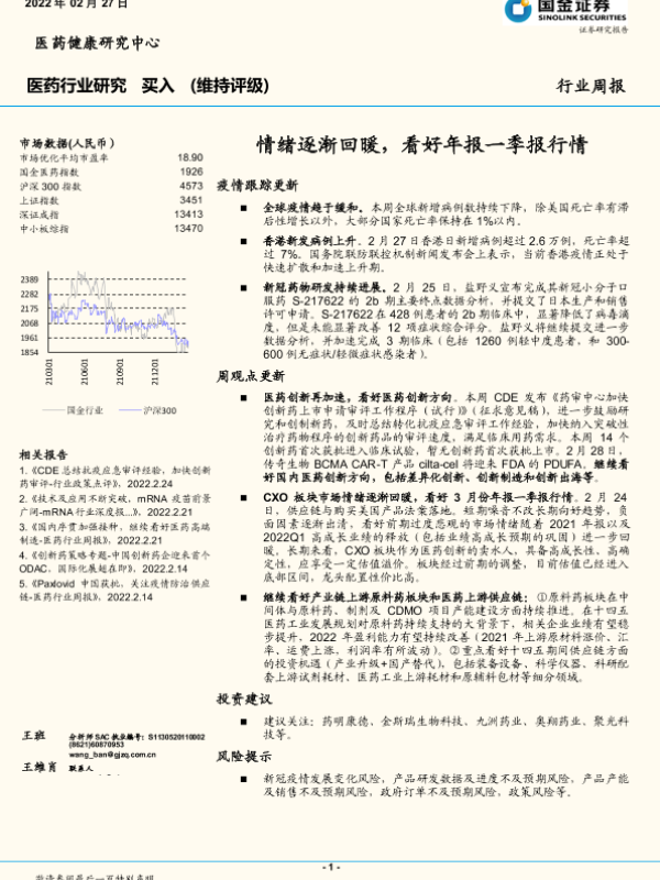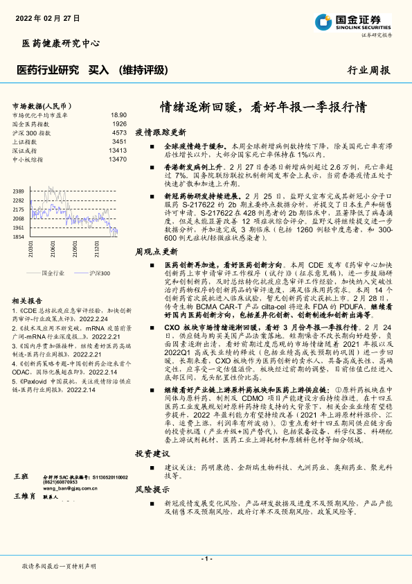 【国金证券】【20220227】医药行业周报:情绪逐渐回暖,看好年报一季报行情-19页