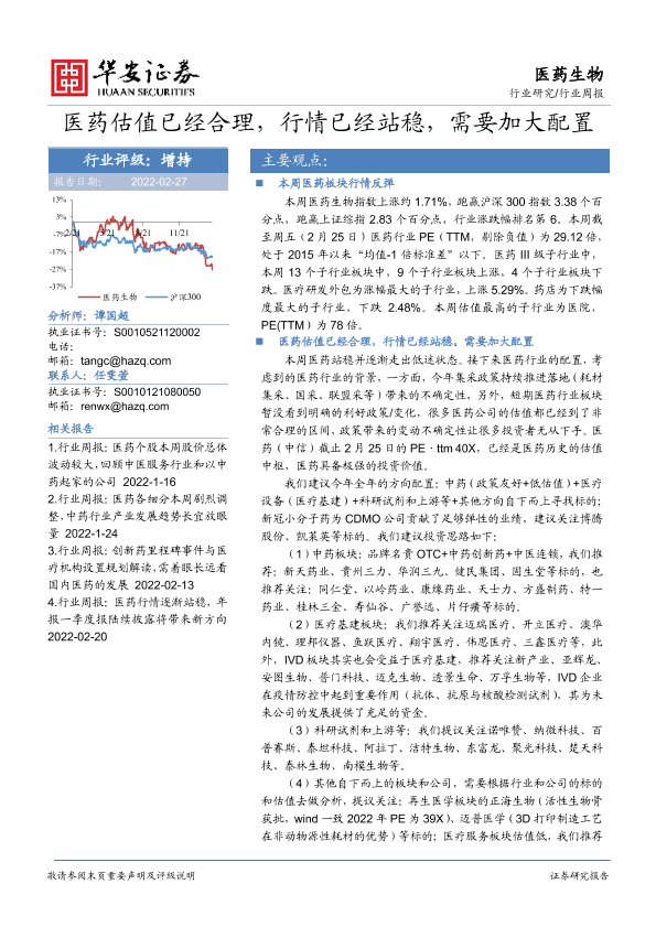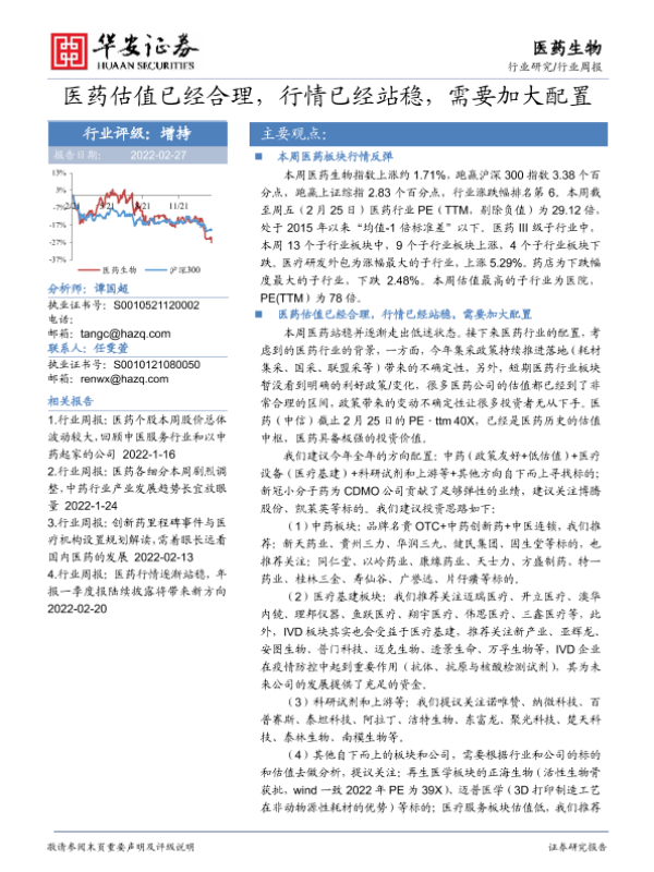 【华安证券】【20220227】医药生物行业周报:医药估值已经合理,行情已经站稳,需要加大配置-16页