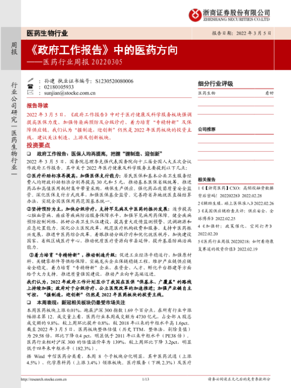 【浙商证券】【20220305】《政府工作报告》中的医药方向-13页
