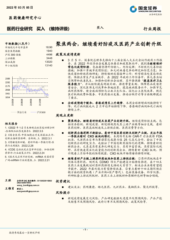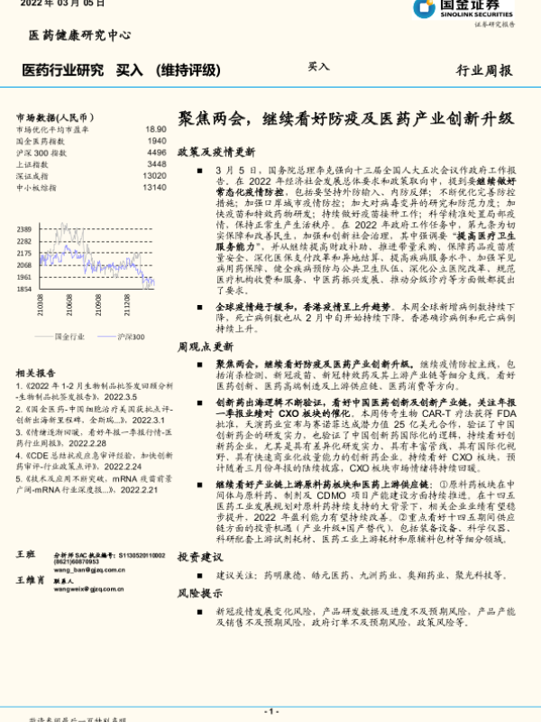 【国金证券】【20220305】聚焦两会,继续看好防疫及医药产业创新升级-18页