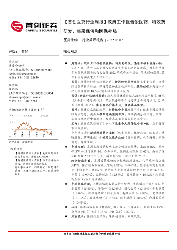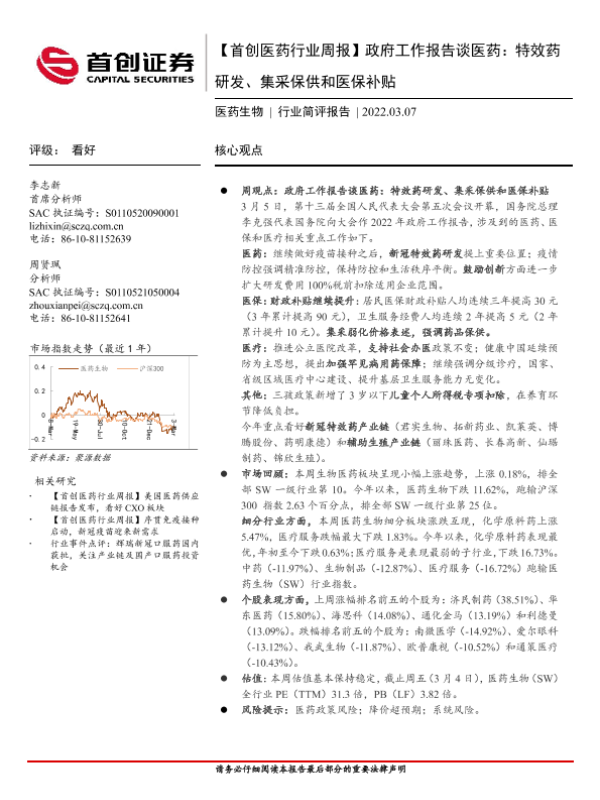 【首创证券】【20220307】政府工作报告谈医药:特效药研发、集采保供和医保补贴-11页