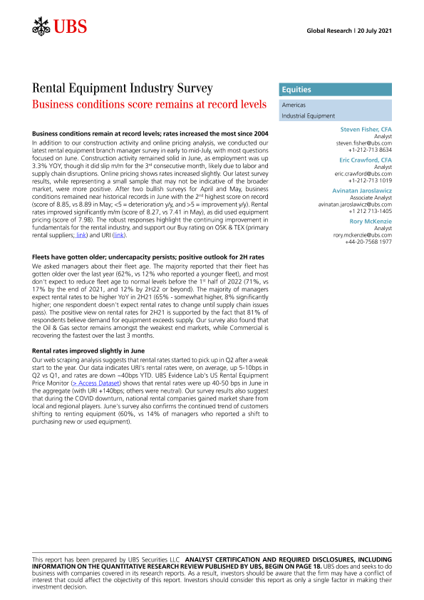 【瑞银】【20210720】瑞银-美股租赁设备行业-商业环境得分保持在创纪录水平-27页