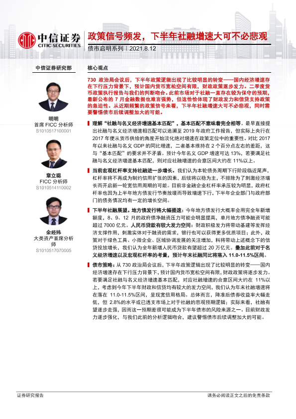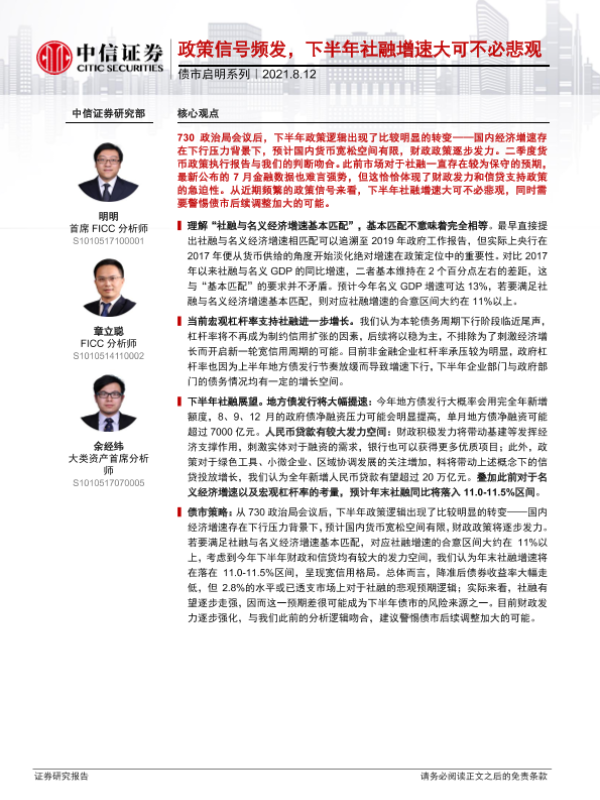 【中信证券】【20210812】政策信号频发,下半年社融增速大可不必悲观-30页