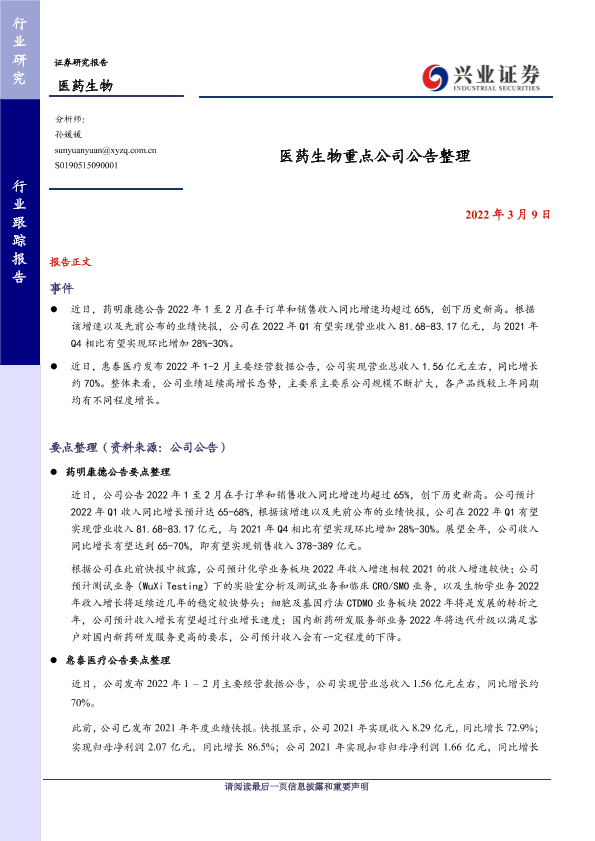 【兴业证券】【20220309】医药生物重点公司公告整理-3页