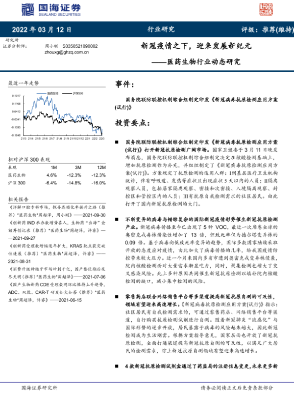 医药生物 市场分析 投资推荐 抗原检测 新冠疫情