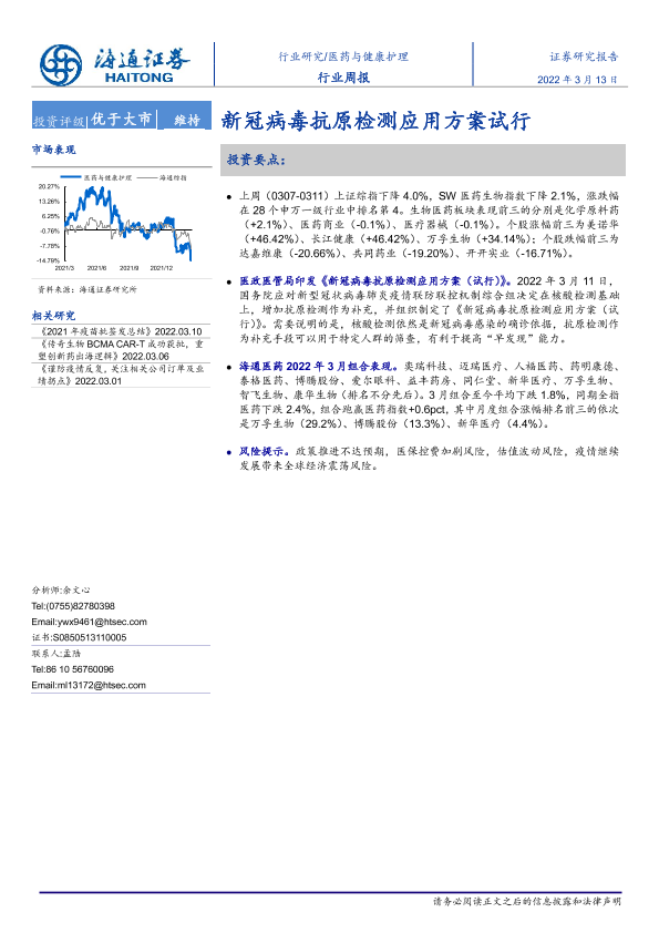 【海通证券】【20220313】医药与健康护理行业周报:新冠病毒抗原检测应用方案试行-6页