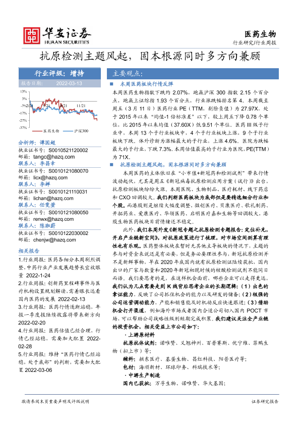 【华安证券】【20220313】抗原检测主题风起,固本根源同时多方向兼顾-22页