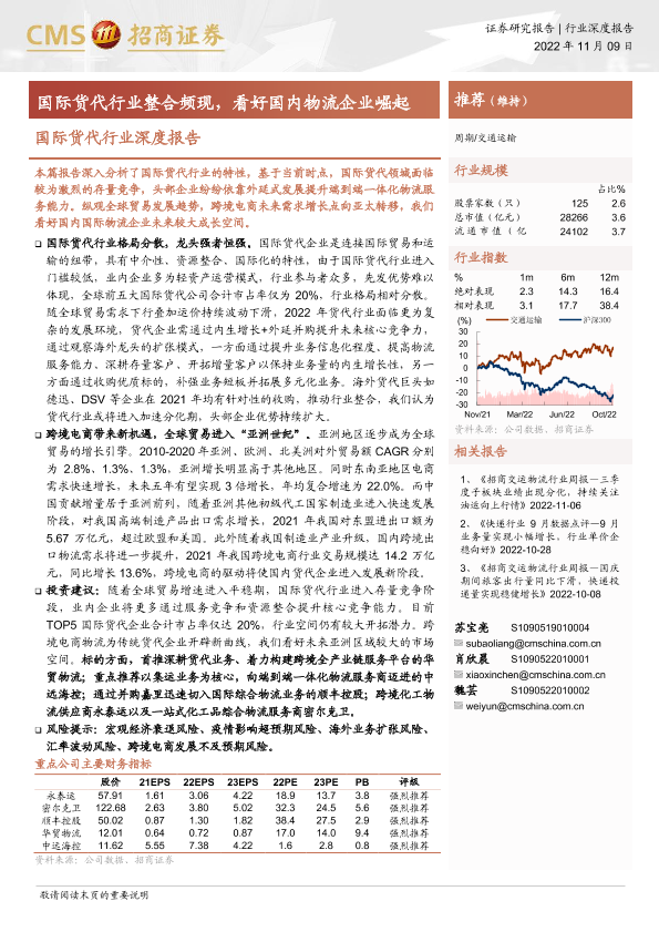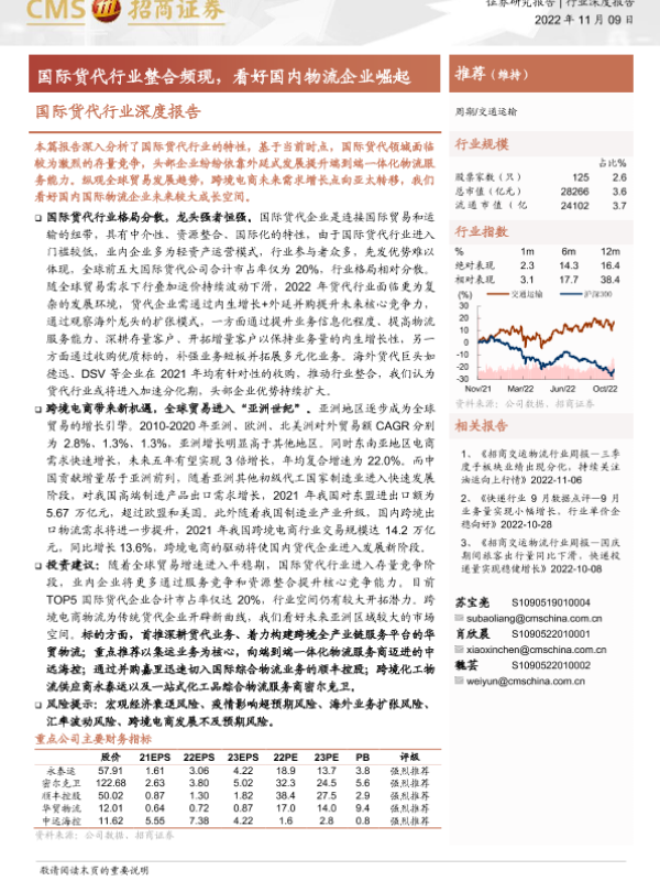 【海通证券】【20221109】国际货代行业深度报告:国际货代行业整合频现,看好国内物流企业崛起-27页