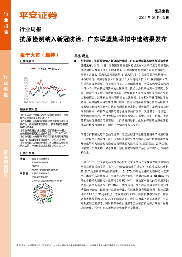 【平安证券】【20220313】医药生物行业周报:抗原检测纳入新冠防治,广东联盟集采拟中选结果发布-7页