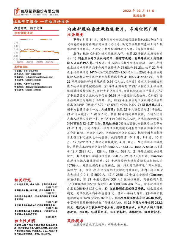 【红塔证券】【20220314】内地新冠病毒抗原检测放开,市场空间广阔-2页
