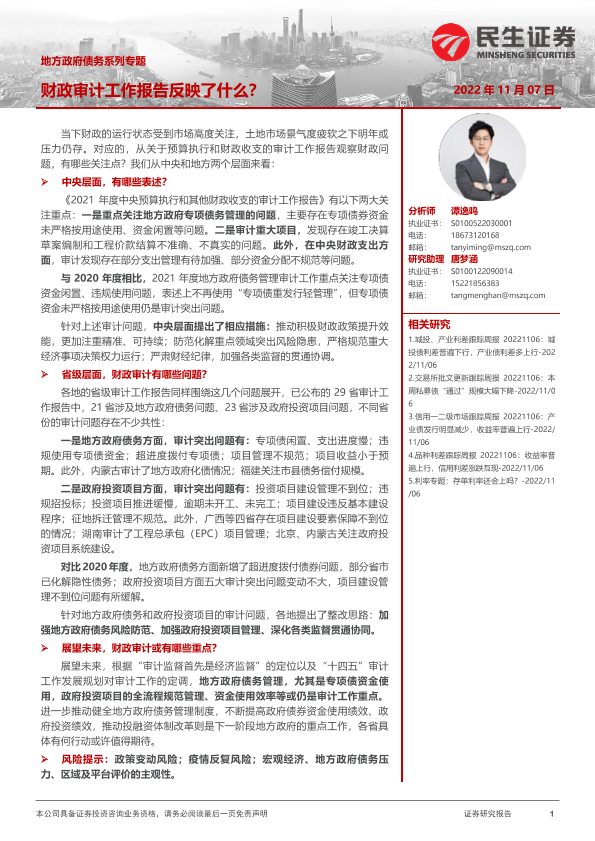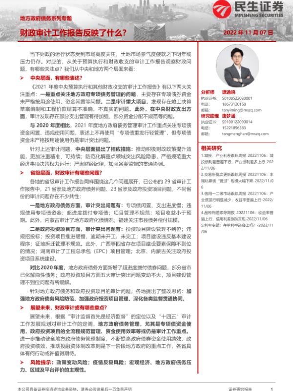 【民生证券】【20221107】地方政府债务系列专题:财政审计工作报告反映了什么?-33页