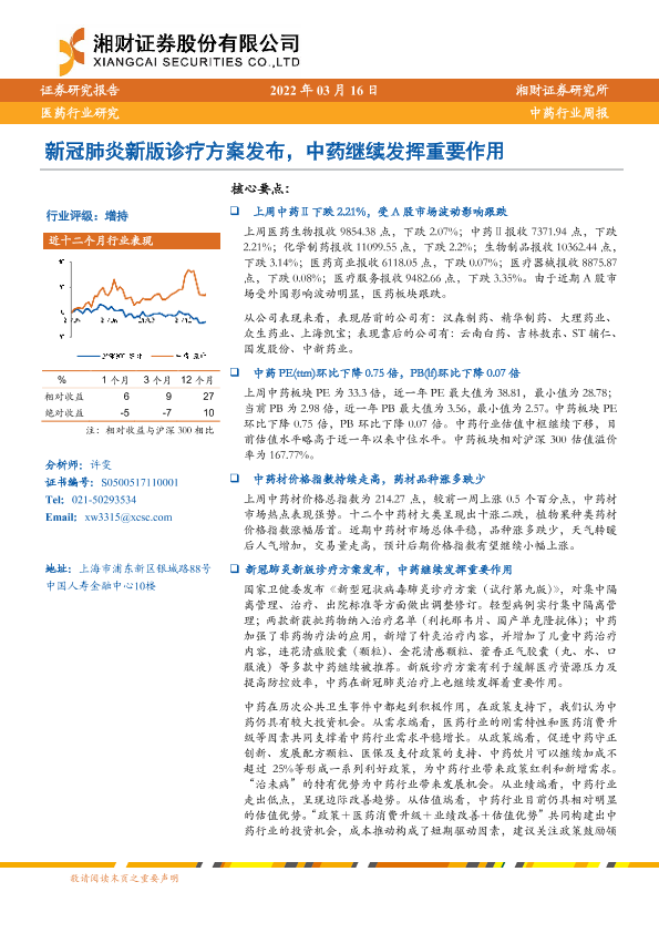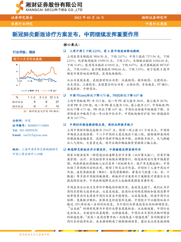 【湘财证券】【20220316】中药行业周报:新冠肺炎新版诊疗方案发布,中药继续发挥重要作用-12页
